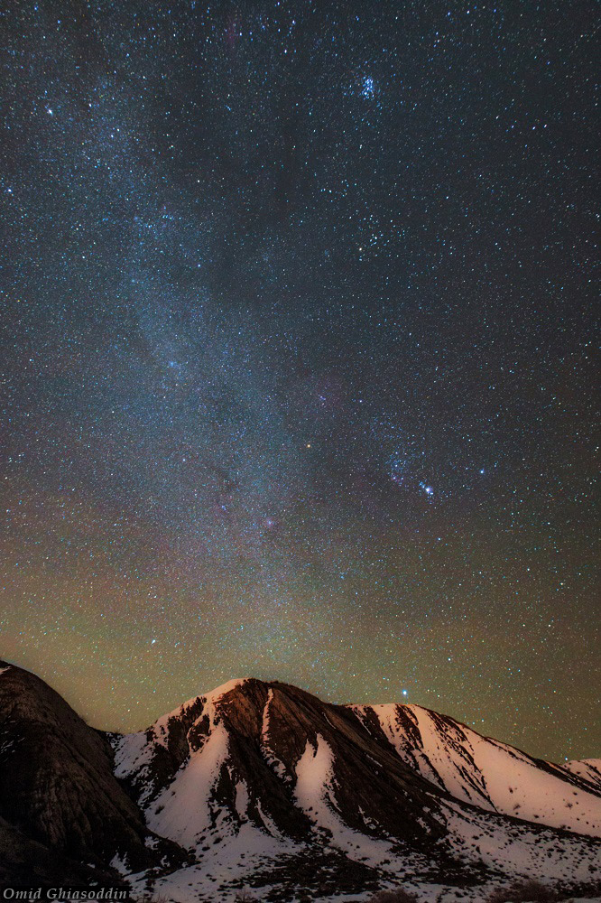 From the photographer: “Rise of winter sky and winter triangle over the snowy mountains of Shahrood in a single-exposure shot.”