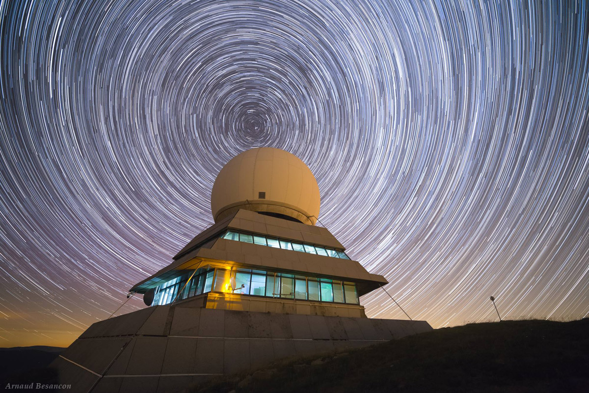 From the photographer: “Circumpolar star trails from the radar of the Grand Ballon (1394m), on a night where I noticed aurora borealis from France. You can see a really weak violet halo light of aurora in the background sky.”