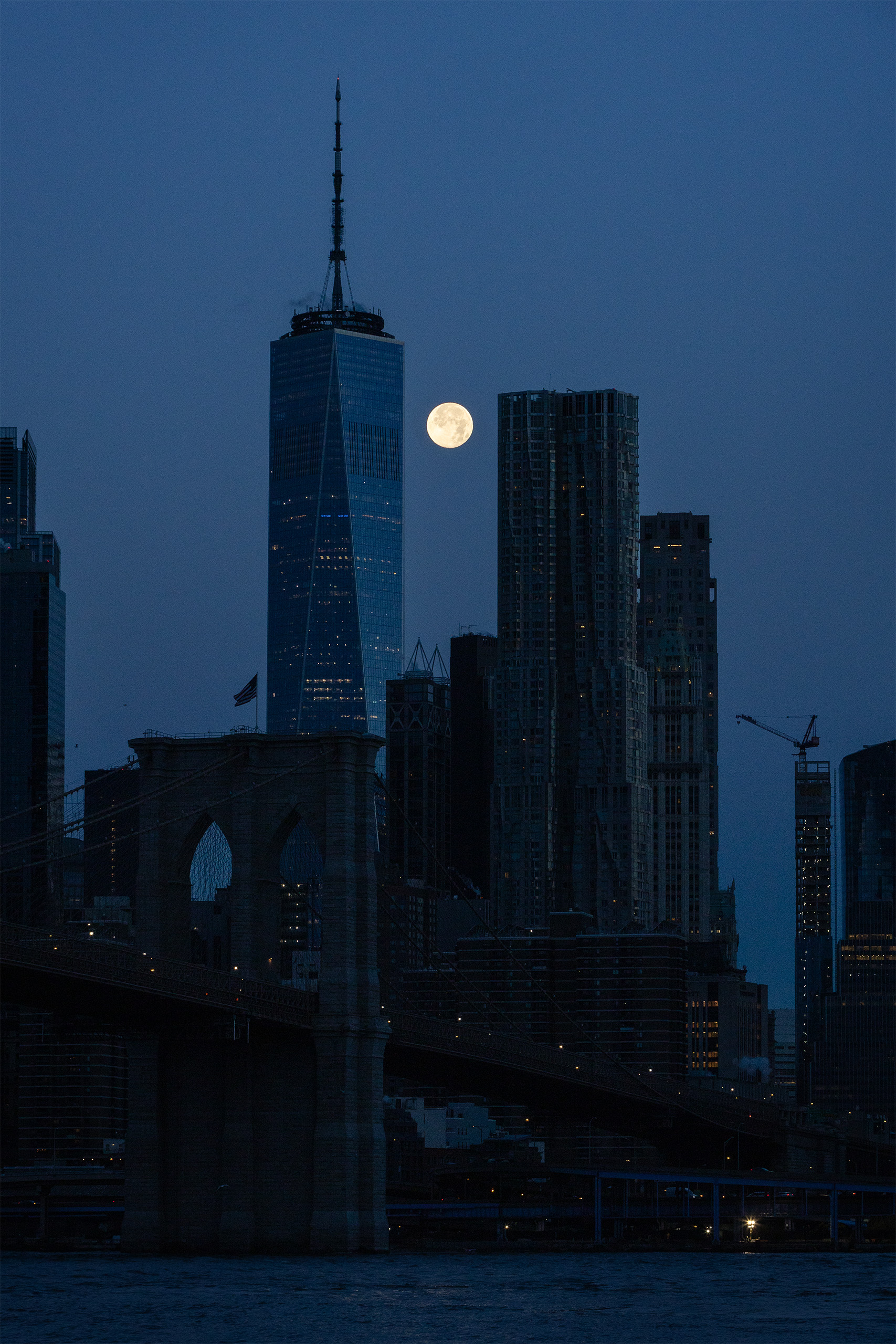 From the photographer: “Single exposure of the Cold Moon setting on the morning of 12/5/2025. Captured from Brooklyn Bridge Park about 10 minutes before sunrise.