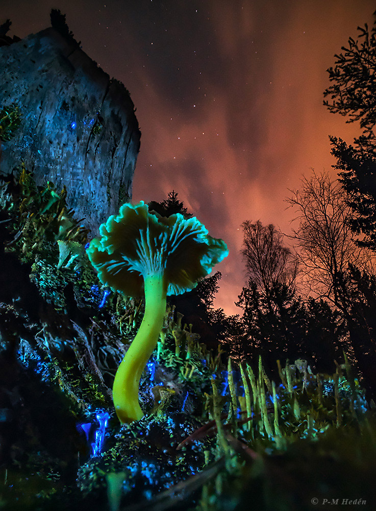 Craterellus tubaeformis, very tasty but tonight just a closer photo of it during moonrise and in the sky you can see the constellation of Cassiopeia. One of the key roles that fungi play in our ecosystem is breaking down organic matter, keeping it moving through the carbon cycle. Over millions of years’ worth of evolution, they’ve gotten pretty good at breaking down very complex natural polymers, like cellulose, one of the main structural components of plants.