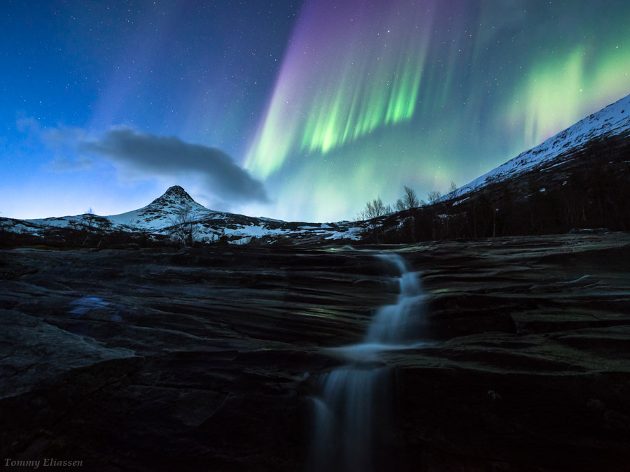 From the photographer: “Colorful auroras over the mountain Smaltinden, on the coast of Helgeland, Norway.”