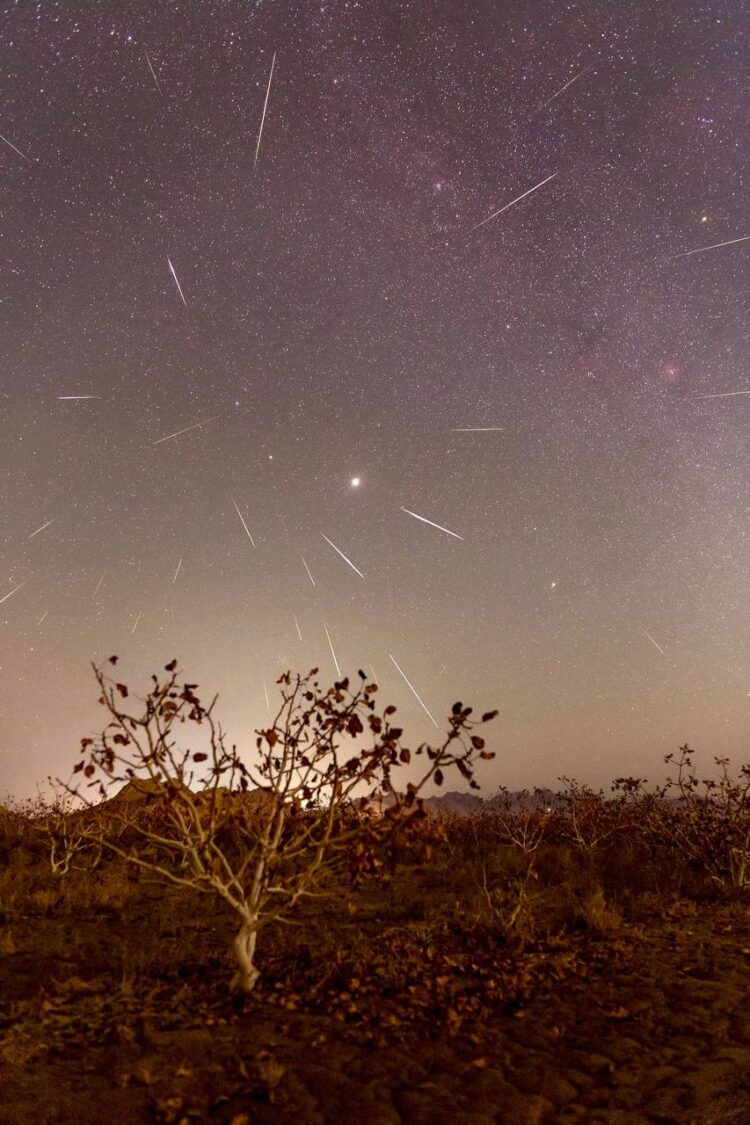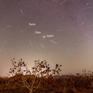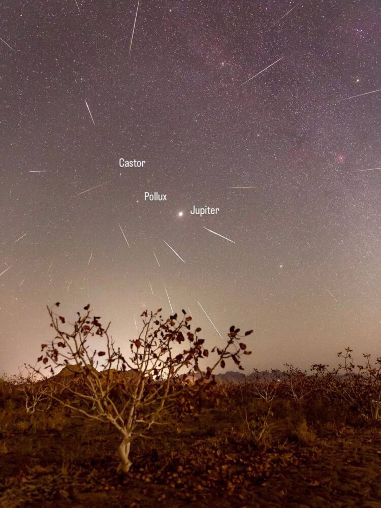 A composite of multiple frames selected from a timelapse sequence of 800 photos taken during the meteor shower. From the photographer: “The sky at the end of autumn has a dazzling display for our eyes. Geminid meteors can be caught in a fight with the clouds. Catch pebbles from the asteroid “Phaethon 3200″ that, when they hit the Earth’s atmosphere, turn into light, direction, and meaning. We only need to look up to understand that the world still has something to say.