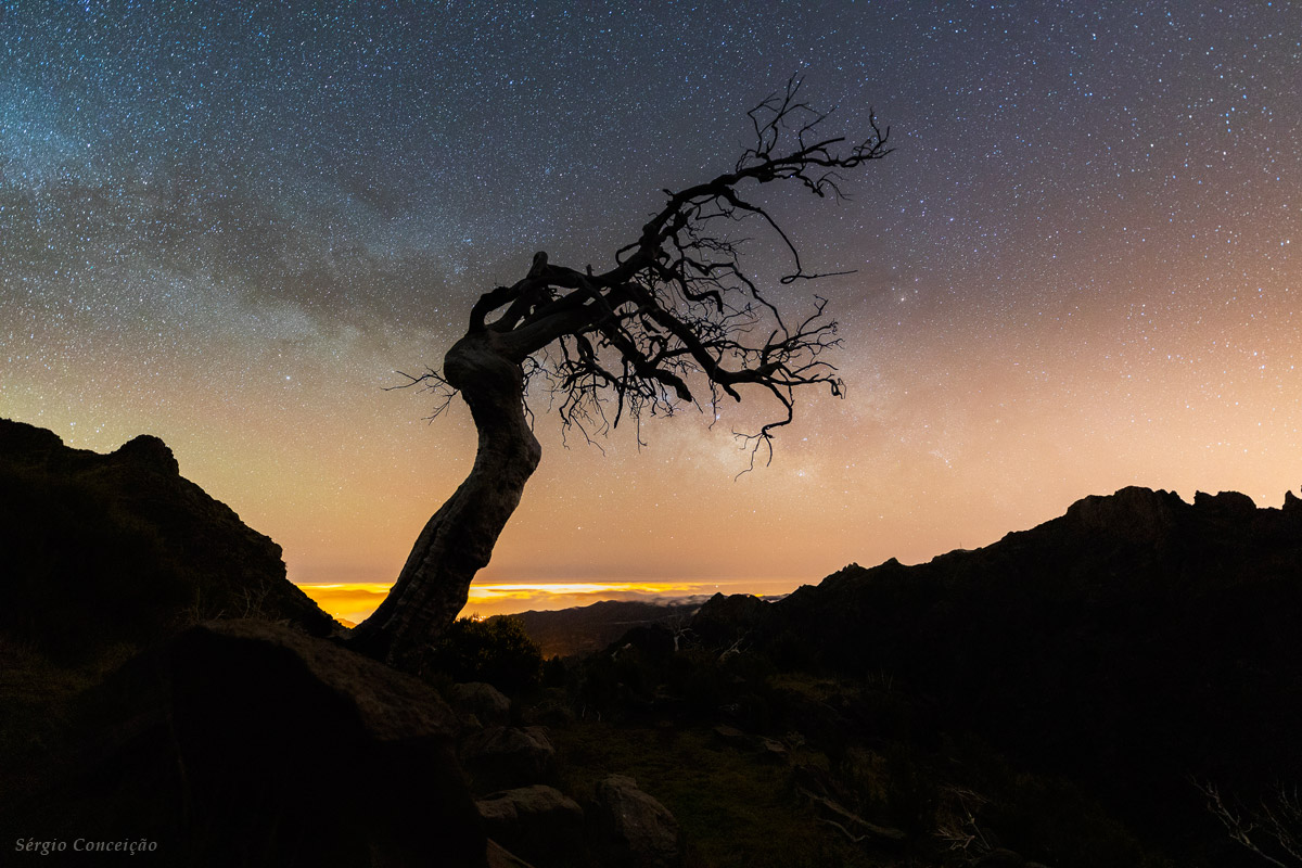 From the photographer: “The route was very hard and very risky until arriving here (Pico Ruivo on the island of Madeira in Portugal). I do not recommend doing this at night, it was 1 hour to walk to this tree, it is cold up there and the fog can come at any moment, the place is 1861 meters of altitude.