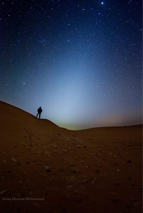 From the photographer: “I was waiting for this interesting phenomenon a few minutes before the dawn or first light of twilight so I was lucky with the false dawn, it was very clear and bright.”