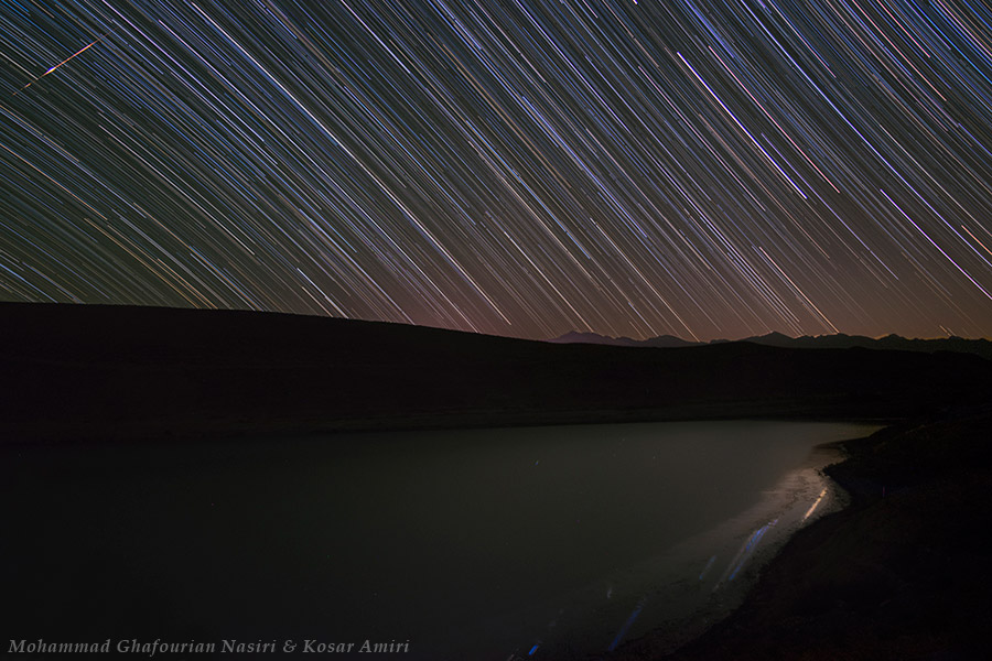 From the photographer: “Star trails over Bazangan lake national-natural monument, east of Iran. A star trail is a type of astrophotograph that utilizes long-exposure times to capture the apparent motion of stars in the night sky due to the rotation of the Earth.