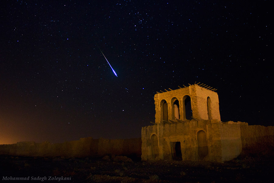 From the photographer: “It was a good experience to watch Perseid meteor shower in a starry night of Qusheh caravansary which hosted our group of stargazers. The 500-year old caravansary is located 36 Km from Damghan in Iran’s Semnan province. With patience, I succeeded to capture a fireball in a 30-second exposure photo on the dawn of August 11. That was a wonderful night.”