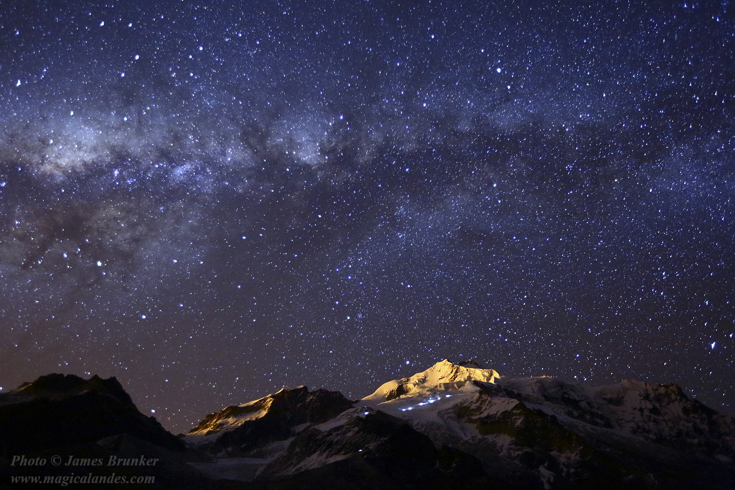 A single exposure photo of the Galactic Centre setting above Mt Huayna Potosí (6088m / 19,975ft) in Bolivia’s Cordillera Real range. The peak is one of the most popular climbs in Bolivia, in the middle of the image below the peak you can see the lights of climbers making their way across the lower glaciers towards the summit. The glow on the peak is from the lights of the cities of La Paz and El Alto maybe 60km away.