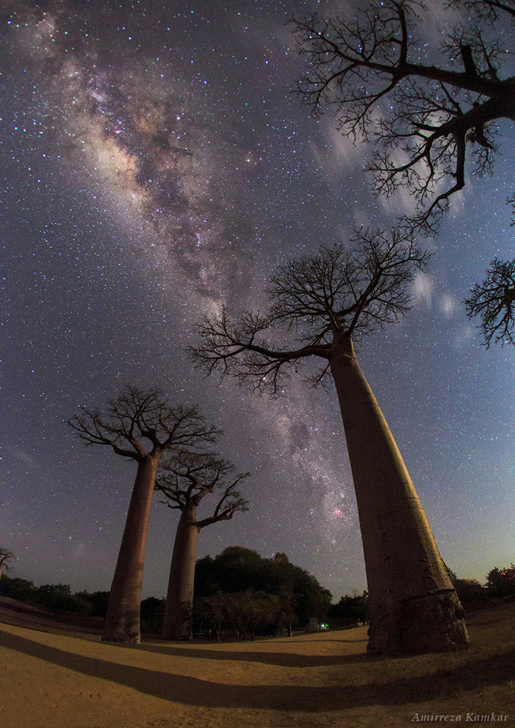 From the photographer: “Central bulge of the Milky Way shines high in the sky, over the magnificent Baobab trees. The setting crescent Moon has illuminated the foreground.