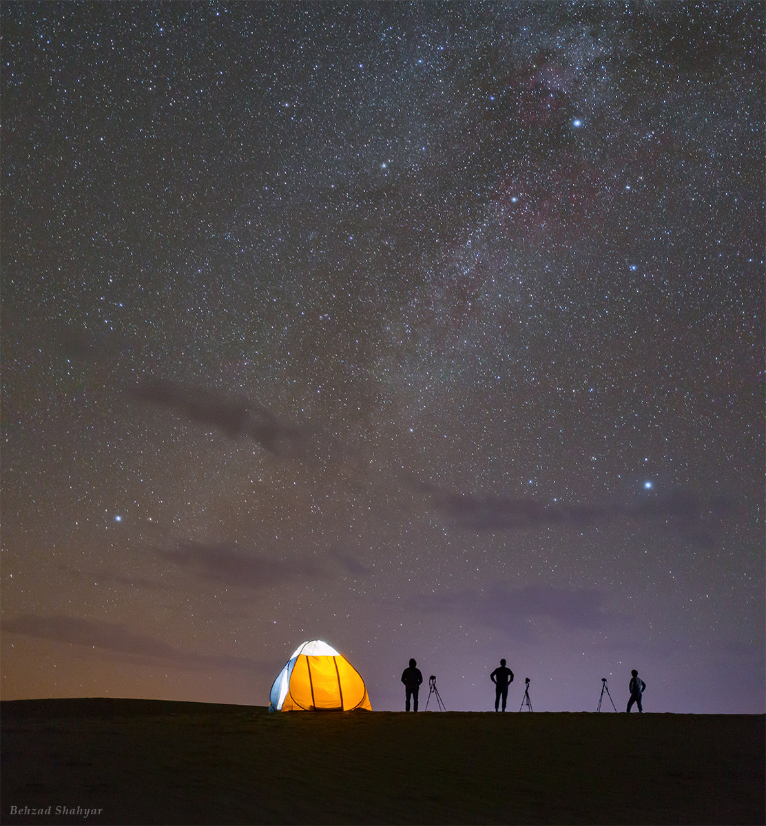 From the photographer: “My dream in a dark and beautiful desert. My friends look at the summer triangle, an ornament of the sky. In this area you can find North America Nebula, Pelican Nebula, Butterfly Nebula and Lyra Constellation.”