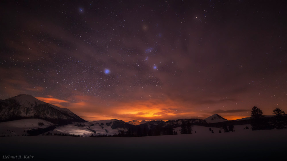 From the photographer: “I have been on my favorite place for winter-astrophotography in my holidays with my Astrotrac in order to complete my project on the Pleiades. The moon phase was quite right for my duties – but when I arrived on my spot I had to accept this annihilated sky you can see on my pic. But when I recognized the halos around the bright stars I decided to take this one as a single frame (14mm) for TWAN – and here it is…”
