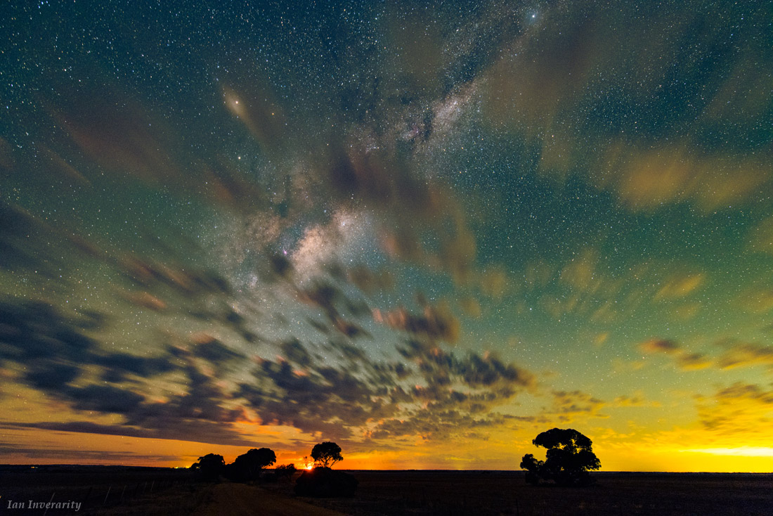 From the photographer: “Moonrise underneath clouds and the Milky Way with light pollution of Gawler on the right.