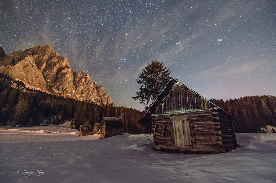 From the photographer: “The beautiful constellation of Orion and Pleiades star cluster over Mount Siera (Cima Sappada), in the Italian Dolomites.
