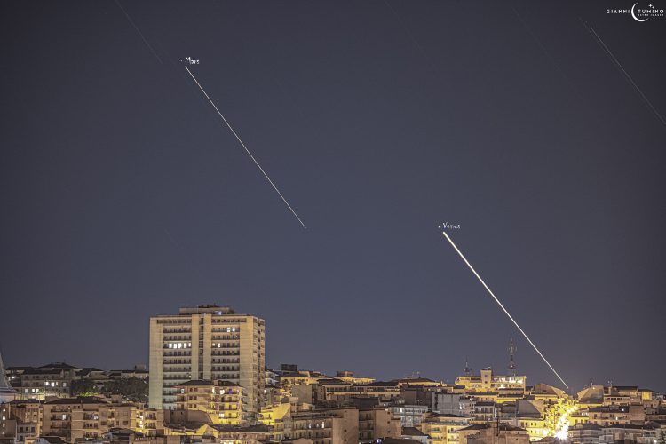 From the photographer: “The trails of two planets (Venus and Mars) above Ragusa city, Sicily, Italy.”