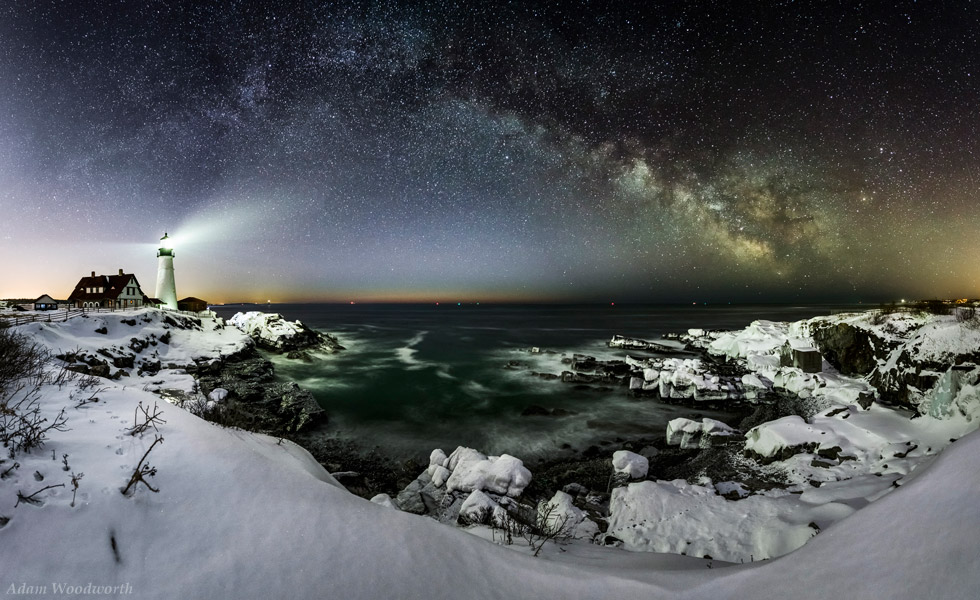 From the photographer: “One of the most beautiful and well known lighthouses in the US, Portland Head Light is on the edge of a city (Portland, Maine) and there is a lot of light pollution around, but the Milky Way is still visible to the naked eye.”