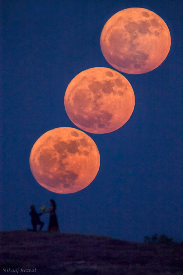 From the photographer: “SuperMoon of 14th November 2016, was 14% bigger and 30% brighter than the ordinary full moons. Reason behind the supermoon is elliptical orbit of our Moon which varies about 50,000 km in oval shape. This was very well planned shot taken over 2-3 trials after visiting the site two times. The composite shows rising of supermoon across planet Earth.