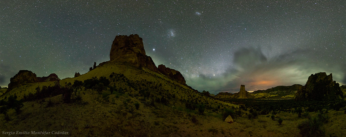 From the photographer: “A fifty billion years nightscape, under the Magellanic clouds at far distance we see Gualjaina lightsource lighting the cloud that covers the milky way and part of the zodiacal light. The geological site is inside a 25km diameter crater.”