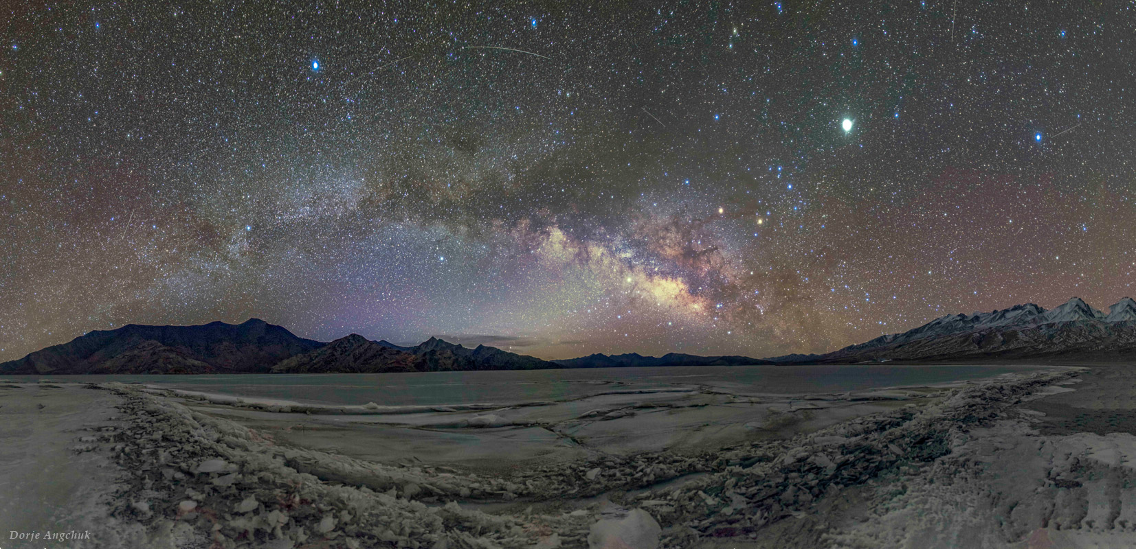 From the photographer: “Conjunction of Jupiter, Mars, Saturn and Milky way over frozen Pangong Lake.”