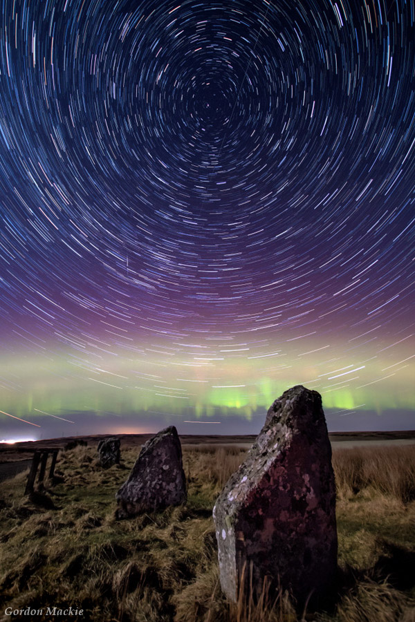 From the photographer: “The scene shows star trails above the moonlit ancient Standing Stones at Achavanich in Caithness. As a bonus the northern lights made an appearance during the shoot.”