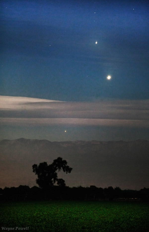 From the photographer: “This photograph of Mars-Venus-Jupiter conjunction next to the Gemini’s Twins is looking up at Sequoia National Park in California, lit by the supermoon on Tuesday Oct 27th, 2015.”