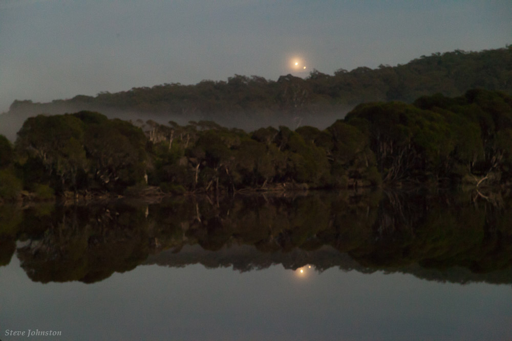 From the photographer: “An early evening image of a Venus-Jupiter conjunction on 1st July 2015, one day following closest visual separation. The landscape is illuminated by the moon behind the camera and Venus is softened due to fog and the scene is mirrored in the calm Genoa River. The area is part of the Croajingolong National Park, which UNESCO nominated a World Biosphere Reserve in 1977. It is also a dark sky site being more than 400 km east of the state capital Melbourne.”