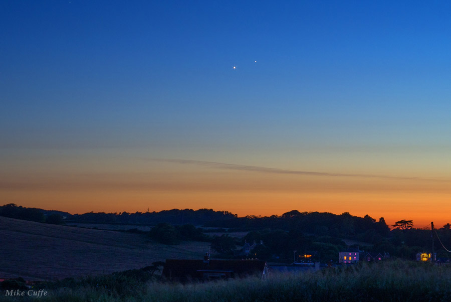 From the photographer: “Conjunction of Venus and Jupiter over Freshwater Bay.”
