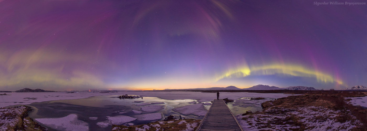 From the photographer: “A lone photographer stands on a pier and waits for the sunset to make way for the stars and auroras.” © Sigurdur William Brynjarsson